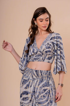 Conjunto Cropped con Manga Campana y Pantalón Smocked