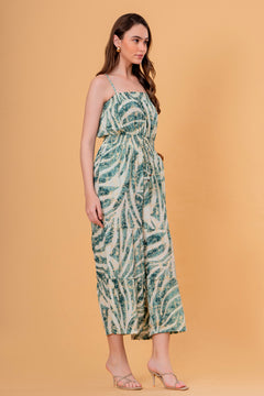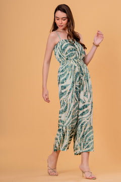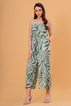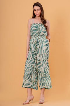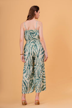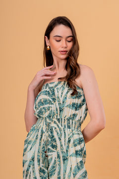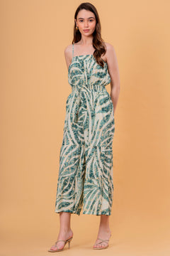Enterizo Largo Fruncido con Estampado Botánico y Pernera Ancha
