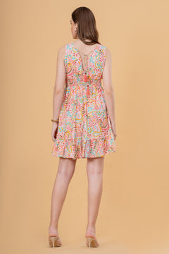 Minivestido Sin Mangas Cachemira con Falda de Volantes