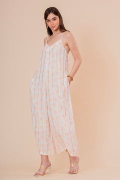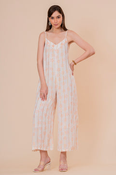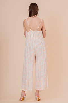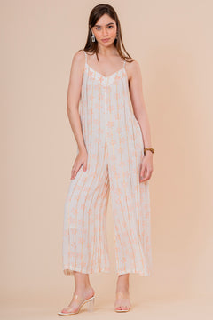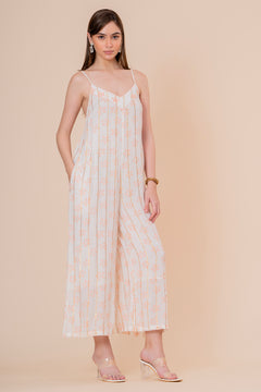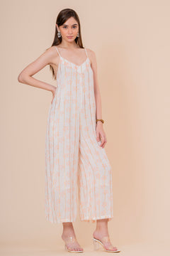 Mono Jumpsuit de Tirantes Blanco con Rayas Doradas