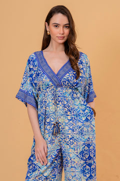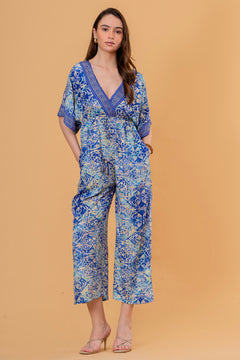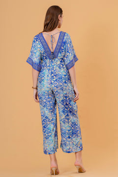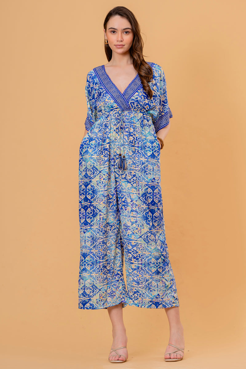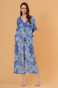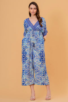 Mono Jumpsuit Manga Kimono Estampado Azulejo Azul