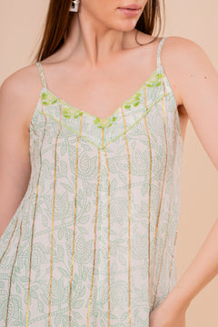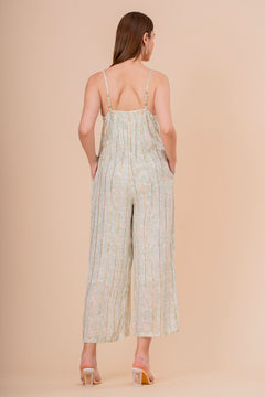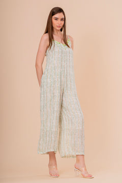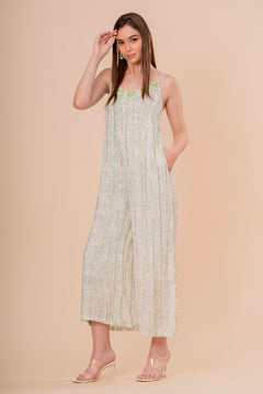 Mono Jumpsuit Tirantes Blanco con Bordado Verde Neón