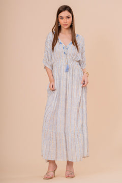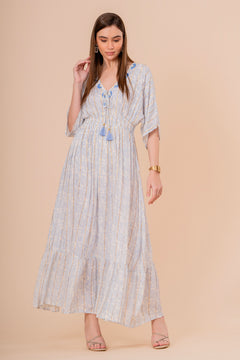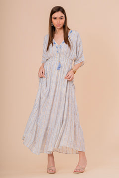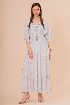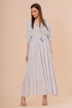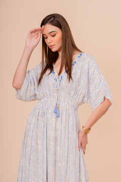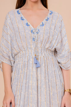 Un vestido midi en un vibrante tono coral, perfecto para el verano. Su diseño de manga corta y corte recto se complementa con un bordado de diseño intrincado en el escote y la cintura. La silueta es cómoda y fluida, ideal para un look elegante y relajado.
