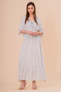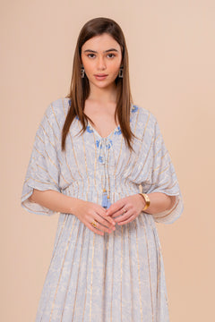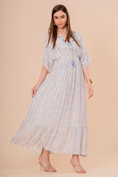Vestido Midi Coral con Bordado y Manga Corta