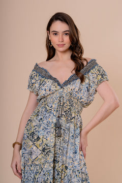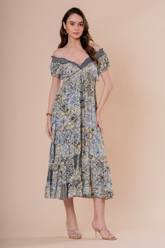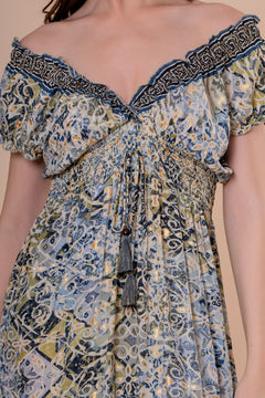 Vestido Midi Hombros Descubiertos Estampado Azulejo